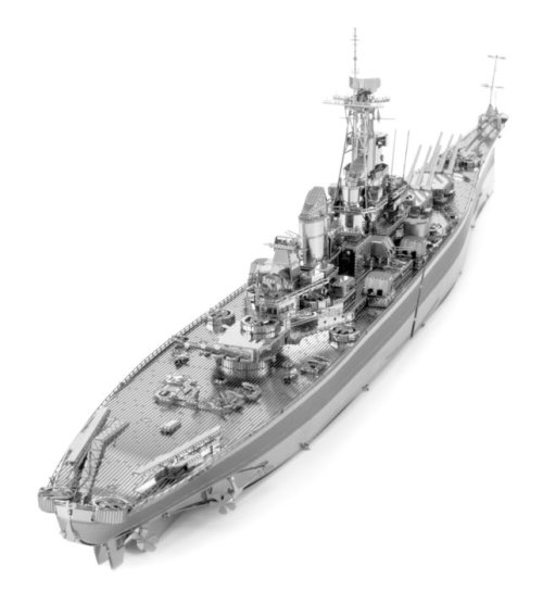 Vzrušujúca výzva, zážitok pri skladaní a oslnivý výsledok – to sú modely METAL EARTH! Model z prémiového radu ICONX v exkluzívnom darčekovom balení Vás očarí ešte dokonalejším spracovaním detailov! Stavba 3D puzzle METAL EARTH ICONX vyžaduje trpezlivosť a šikovné ruky. Výsledok práce však plne vyváža vynaložené úsilie! Miniatúrne repliky sú obzvlášť pôsobivou a pútavou dekoráciou nielen doma, ale aj v kancelárii či v škole. Z obdĺžnikových plátkov ocele (21 x 11 cm) s časťami svetových monumentov, slávnych dopravných prostriedkov, hudobných nástrojov či zvierat Vám pod rukami vyrastú detailne prepracované, fascinujúce modely. Autentický vzhľad 3D puzzle METAL EARTH ICONX je dosiahnutý vďaka detailnému laserovému gravírovaniu. Balenie obsahuje 3 oceľové plátky, pinzetu a návod na zloženie. Náradie nie je súčasťou balenia. PRACOVNÝ POSTUP: Jednotlivé diely vyberte z kovových plátkov, v prípade potreby použite malé štiepacie nožnice (nie sú súčasťou). Dieliky sa spájajú k sebe pomocou zámkov tvorených úchytom (zobáčikom) a otvorom. Zobáčik ohnite pomocou malých tenkých klieští (nie sú súčasťou) a postupne spojte všetky zámky až vznikne veľmi realistický majstrovský kúsok! Odporúčaný vek: od 14 rokov. USS Missouri (BB-63) bola bojová loď amerického námorníctva, postavená počas druhej svetovej vojny a slúžiaca až do doby vojny v Perzskom zálive. Išlo o poslednú loď triedy Iowa. Missouri sa stala jednou z posledných bojových lodí postavenou v USA. Na jej palube bola 2. septembra 1945 podpísaná kapitulácia Japonska, ktorá ukončila druhú svetovú vojnu. Missouri bola objednaná v roku 1940 a dokončená v júni 1944. Počas Vojny v Tichomorí sa zúčastnila bitiek o Iwodžime a Okinawe, kde ostreľovala japonské ostrovy. Bola tiež nasadená do bojov počas Kórejskej vojny v rokoch 1950 až 1953. V roku 1955 bola vyradená a prevedená do rezerv amerického námorníctva. Počas roku 1984 bola modernizovaná a následne sa zúčastnila ako podporná loď Vojny v zálive. Missouri dostala celkom 11 hviezd (vyznamenanie) za službu v druhej svetovej vojne, v Kórei a vo vojne v Zálive. Vyradená bola 31. marca 1992, zostala však v registri amerického námorníctva až do januára 1995, kedy bola vyškrtnutá zo zoznamu. V roku 1998 sa za prispenia USS Missouri Memorial Association stala múzeom v Pearl Harbore na Havaji. Viac na Wikipédii Rozmer zloženého puzzle cca 30,5 x 8,3 x 3,8 cm