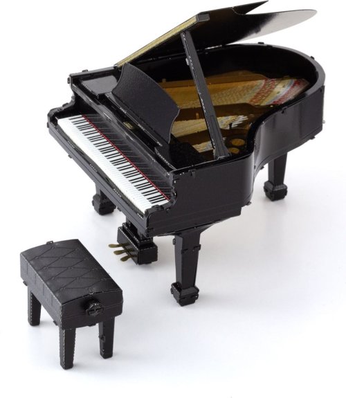 Koncertný klavír je hudobný nástroj ovládaný klaviatúrou, ktorá sa skladá z 52 bielych klávesov a 36 čiernych klávesov, pokrývajúcich rozsah viac ako siedmich oktáv. Koncertný klavír je navrhnutý tak, že jeho rám a struny sú paralelné s podlahou, pričom struny smerujú od klaviatúry. Klavír tiež obsahuje 3 pedále, ktoré sa používajú na rôzne zmeny zvuku nástroja. Súprava na vytvorenie fascinujúceho kovového 3D modelu . Stavba puzzle METAL EARTH vyžaduje trpezlivosť a šikovné ruky. Výsledok práce však plne vyváža vynaložené úsilie. Miniatúrne repliky sú pôsobivou a pútavou dekoráciou. Zo štvorcových plátkov ocele Vám pod rukami vyrastú detailne prepracované, fascinujúce modely. Autentický vzhľad 3D puzzle METAL EARTH je dosiahnutý vďaka detailnému laserovému gravírovaniu. Náradie nie je súčasťou balenia. PRACOVNÝ POSTUP: Jednotlivé diely vyberte z kovových plátkov, v prípade potreby použite malé štiepacie nožnice (nie sú súčasťou). Dieliky sa spájajú k sebe pomocou zámkov tvorených úchytom (zobáčikom) a otvorom. Zobáčik ohnite pomocou malých tenkých klieští (nie sú súčasťou) a postupne spojte všetky zámky až vznikne veľmi realistický majstrovský kúsok! Rozmer zloženého puzzle cca 7,3 x 6,2 x 7,7 cm