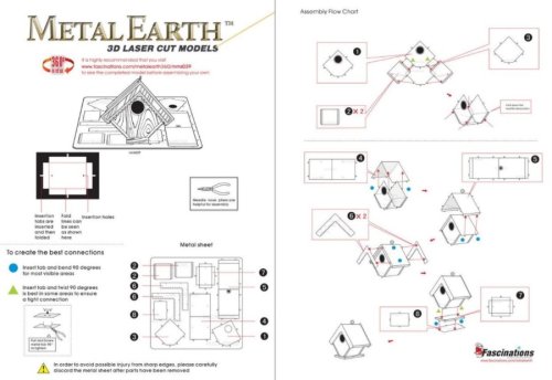 Jednotlivé diely vyberte z kovových plátkov, v prípade potreby použite malé štiepacie nožnice (nie sú súčasťou). Dieliky sa spájajú k sebe pomocou zámkov tvorených úchytom (zobáčikom) a otvorom. Zobáčik ohnite pomocou malých tenkých klieští (nie sú súčasťou) a postupne spojte všetky zámky až vznikne veľmi realistický majstrovský kúsok!