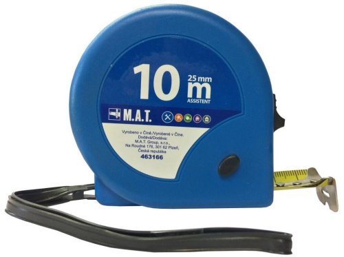 Stáčací meter v odolnom plastovom puzdre, s poistkou na zablokovanie a aretáciu pásma.