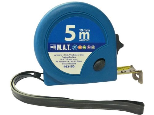 Stáčací meter v odolnom plastovom puzdre, s poistkou na zablokovanie a aretáciu pásma.