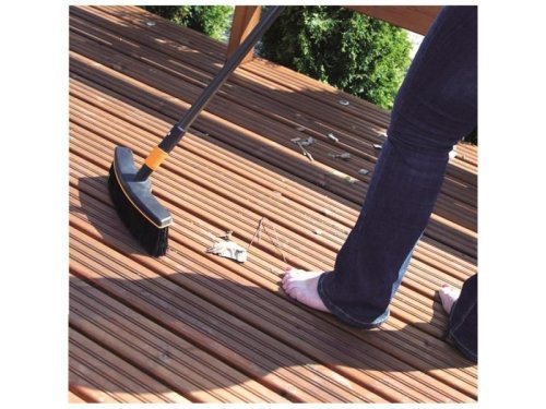 Metla je vhodná predovšetkým na zametanie hladkých povrchov, ako sú terasy, palubovky a leštené betónové podlahy. Má širokú pracovnú časť a mäkké štetiny, ktoré umožňujú rýchle a účinné zametanie. Systém QuikFit umožňuje spojenie rôzneho záhradného náradia s jedinou násadou. Odporúčaná násada: M alebo L. Šírka: 75 mm, dĺžka: 380 mm, hmotnosť: 370 g. Pôvodná Fiskars číslo: 135533.