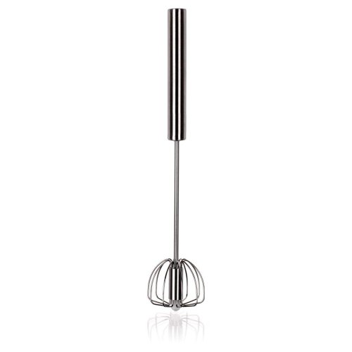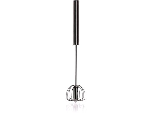Rotačná šľahacia metla 31 cm CULINARIA. Materiál nerez 430 (18/0). Univerzálna rotačná metla Vám umožní bez námahy napeniť mlieko, ušľahať šľahačku či bielky alebo namiešať omeletu. Stačí na metli zatlačiť a šľahacia časť sa sama roztočí. Opakovaným pohybom dole a hore ju udržujete v neustálom pohybe. Vďaka malému priemeru šľahacej hlavice využijete na šľahanie aj poháre a úzke nádoby. EAN 8591022345818