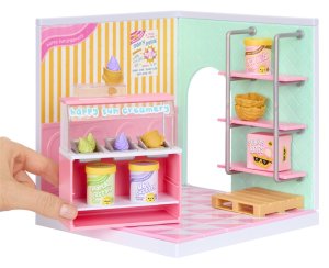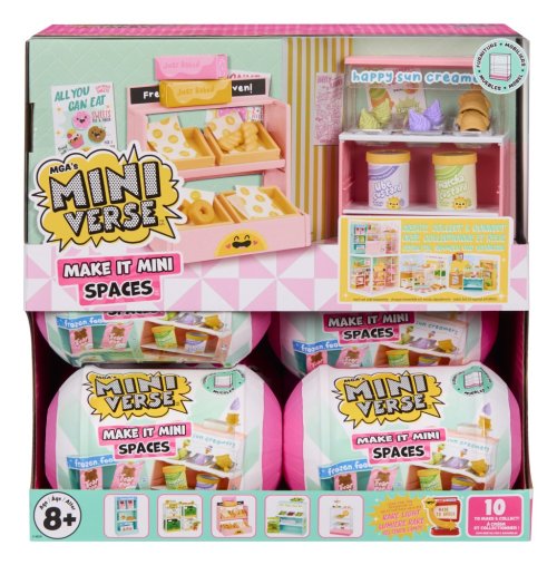 Vdýchni život MGA's Miniverse Miestnostiam. Miestnosti môžeš s týmto nábytkom upraviť tak, aby vyrobené miniatúry MGA's Miniverse vyzerali čo najlepšie. Vnútri balenia nájdeš všetko potrebné na vytvorenie výstavných skríň, regálov alebo bufetových stolíkov pre mini jedlá a nápoje. Každý set je ladený do iného štýlu a obsahuje „ingrediencie“, ktoré zodpovedajú téme nábytku. Môžeš rozbaliť modernú vitrínu, retro policu alebo roztomilý pultík.