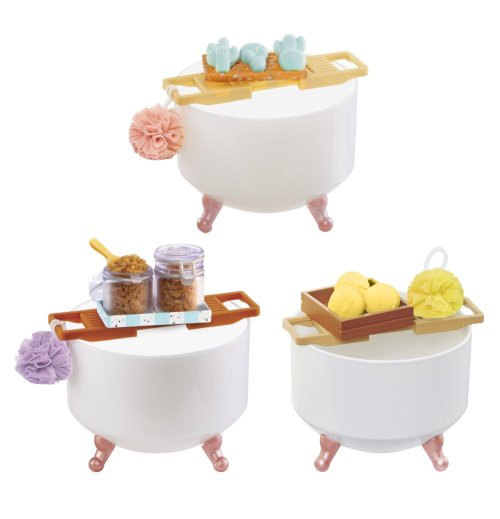 Mini hrač ky...VEĽK Á prekvapenie! Urob to! Vystav to! Rozbal rozkošné pomôcky pre zdravie a krásu vo forme mini replík. Sú tak miniatúrne, ale aj napriek tomu s neuveriteľne realistickými a funkčnými detailmi! V každom balení je dosť ingrediencií na výrobu rôznych gulí s penou do kúpeľa, scrubov, mydiel alebo solí do kúpeľa. Všetko je krásne navoňané a skutočne funkčné. Obal vyzerá ako malá vaňa.