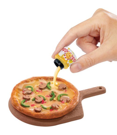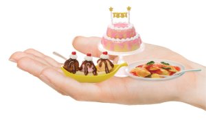 Mini hračky…VEĽKÉ prekvapenia! Urob to! Naservíruj to! A máme tu ďalšiu časť série Mini večerí…. Rozbal svoje obľúbené jedlo vo forme mini replík. Je tak miniatúrne, ale aj napriek tomu s neuveriteľne realistickými detailmi! Jedlo alebo nápoj pripravíš z ingrediencií v tvojom balíčku, potom ho necháš aspoň 5 minút na priamom slnku vytvrdnúť alebo naň zasvietiš UV lampičkou a môžeš servírovať! Priprav si napríklad jahodový alebo čokoládový koláč alebo pizzu.