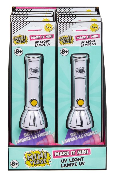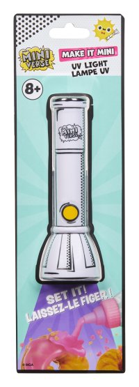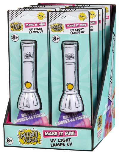 Mini hračky…VEĽKÉ prekvapenia! Urob to! Vystav to! Mini UV baterka pomôže s vytvrdnutím všetkých MGA's Miniverse jedál, nápojov, dekorácií a ďalších replík. Stačí posvietiť 15 sekúnd na výrobok a môžeš vystavovať! Baterka má iba jedno tlačidlo, takže jej používanie je super jednoduché.