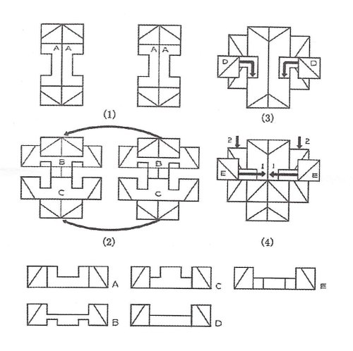 Hlavolam z prírodného materiálu, ktorý je ošetrený hnedým náterom. V prvom rade treba prísť na to, ako hlavolam bez použitia sily rozložiť. Následne musíte prísť na spôsob, ako hlavolam opäť zložiť tak, aby držal tvar.