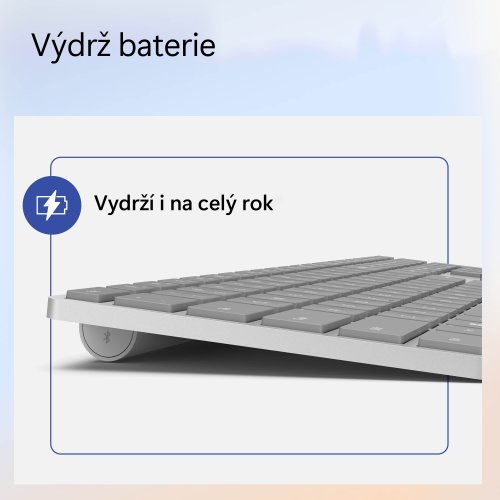 Vďaka klávesu Copilota pri klávesnici pre Surface máte vo Windows 11 výhody umelej inteligencie na dosah ruky. Táto elegantná klávesnica umožňuje klasické písanie so zabudovanou numerickou časťou a vyhradenými klávesmi pre rýchly prístup k funkciám výstrižky a skica, expresívny vstup, stlmenie hovoru a ďalším.