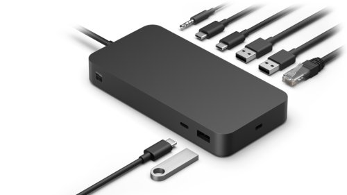 Navrhnuté pre: *Surface Laptop 5, 6, 7. edícia (Copilot+ PC) *Surface Laptop Studio, Laptop Studio 2 *Surface Pro 8, Pro 9, Pro 10, Pro 11. edícia (Copilot+ PC) *Zariadenia s Windows 11 a porty spájkovací zdroj 165 W (priechodný až 96 W) *Kábel ThunderboltFootnote 4 s indikátorom nabíjania LED (80 cm) *1 predný USB-A (USB 3.1 Gen 2, 7,5 W) *1 predný USB-CFootnote (USB 4 ThunderboltFoot) 3.1 Gen 2, 7,5 W) *2 zadný USB-CFootnote (USB 4 ThunderboltFootnote 4, s aktívnou podporou videodispleja, 15 W) *1 konektor siete ethernet (2,5 Gbit/s) *3,5 mm zvukový konektor * Podpora bezpečnostného zámku (kompatibilný so zámkom Kensington) * Skrutkovacie matice pre montáž na stôl Rozmery: 150 mm × 75 mm × 21,3 mm Hmotnosť: 410 g