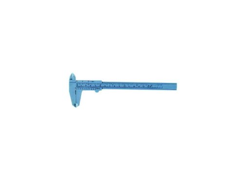 Plastové posuvné meradlo 150mm, delená stupnica v mm a palcoch, pre orientačné meranie.