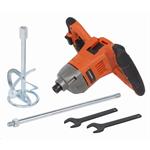 Miešadlo má mäkčené držadlo , ktoré vám presne padne do dlane a zaistí pohodlný a stabilný úchop . Dodávaná miešacia metla má rozmery 100 x 600 mm , takže účinne spracuje aj väčšie množstvo materiálu. Nechýba hliníkový kryt prevodovky a aretácia vypínača pre maximálnu bezpečnosť práce. Pri dlhšej pracovnej dobe uvítate nízku hmotnosť prístroja, ktorý váži iba 3,5 kg .