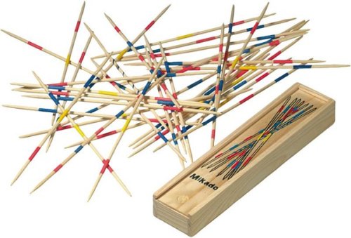 Hra mikádo, ktoré prežíva desaťročia. Prináša napätie a zábavu a zároveň je ľahko zbaliteľná na prenos. Drevené tyčinky v drevenej krabičke balené na blistri.
