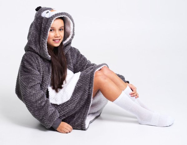 Veľká mikina s kapucňou s motívom zvieratka , ktorá plní funkciu teplučké, mäkučké a nadýchané deky, ktorá zahreje pri každej príležitosti a navyše deti potešia svojim hravým a ľúbivým dizajnom . Vnútro mikiny bolo vyrobené z hrejivého nadýchaného sherpa fleecu a lícová strana zo super mäkkého hebkého materiálu , používaného na výrobu tých najmäkších diek. Všetky mikiny z tohto radu majú aj veľké predné vrecko , v ktorom sa dajú krásne ohriať studené ruky. Každé dieťa sa v nej bude určite cítiť pohodlne, či už doma na gauči pri sledovaní televízie alebo odpočinku, alebo len tak pri hraní sa, kedy ho nijako nebude obmedzovať v pohybe. Veľmi praktická je ale aj pri stanovaní či iných outdoorových aktivitách alebo len tak pri vonkajšom posedení na záhrade v chladnejšom počasí. Táto mikina a deka v jednom je krásnym a praktickým darčekom
