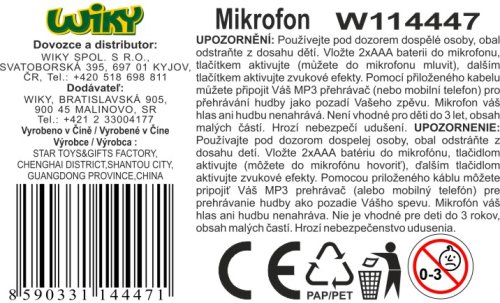 Mikrofón. Veľkosť 22 cm. Vytvára zvukové efekty. V mikrofóne je možné pripojením k prehrávaču púšťať mp3 ako doprovod k spevu. Súčasťou balenia je kábel na pripojenie mp3 prehrávača. 2xAAA súčasťou.