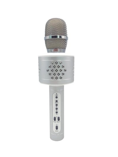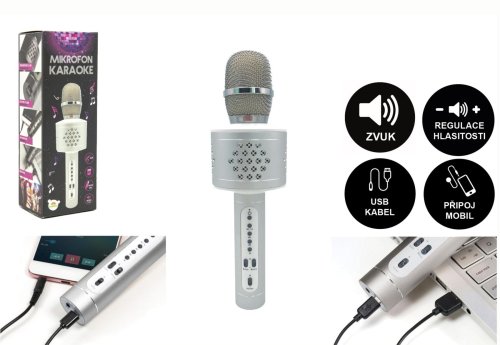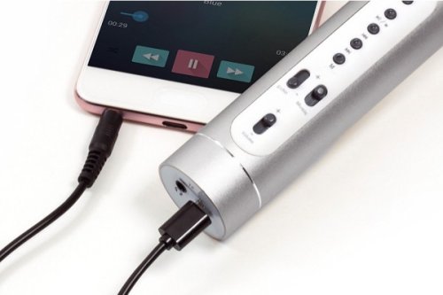 Bezdrôtový karaoke mikrofón nesmie chýbať na žiadnej párty. Pomocou kábla alebo Bluetooth prepojíte svoj telefón s mikrofónom. AUX konektor pre prehrávanie hudby z mobilného telefónu, PC, tabletu alebo MP3/MP4 prehrávača. Obsahuje slot pre TF card - zapnite mikrofón dlhším stlačením tlačidla ON, vložte pamäťovú kartu a mikrofón začne prehrávať hudbu uloženú na karte. Môžete začať spievať spoločne s mikrofónom. AUX konektor - zapojte kábel s koncovkou do AUX slotu a druhú koncovku USB do mobilu, tabletu, PC alebo MP3. Mikrofón začne prehrávať hudbu, ktorú si v pripojenom zariadení vyberiete a môžete začať spievať. Pri zapnutí mikrofónu Bluetooth pracuje spontánne. Ak spojenie nenadviaže, hľadá iné Bt spojenie. Ak mikrofón nemôžete spárovať, skontrolujte, či zariadenie, s ktorým chcete mikrofón spárovať podporuje A2DP. Možné nastavenie hlasitosti a intenzity hudby a ozveny. Technické údaje: