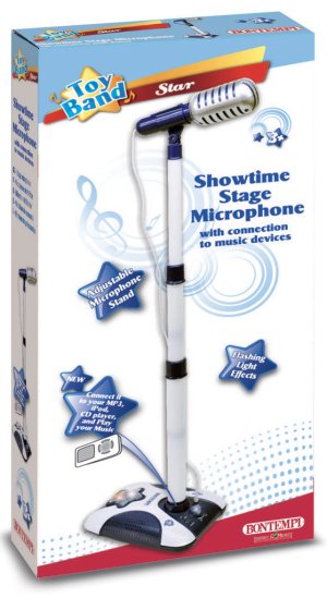 Pódiový mikrofón so stojanom. Obsahuje demo pesničky, 3 rôzne zvukové efekty, světelené efekty, automatické vypínanie (úspora batérií), konektor na prepojenie s ostatnými zariadeniami.