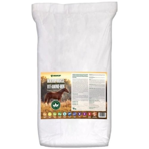 Ľahko sa podáva, obsahuje všetky mikrominerály v organickej forme, takže sú lepšie stráviteľné a využiteľné. MIKROP ® HORSE VIT.AMINO.MIN ORGANIC PELLETS je prémiový granulovaný vitamíno-minerálny prípravok s vysokým obsahom organicky viazaných látok, vitamínov, mikroprvkov a esenciálnych aminokyselín. Doplnok je bezobilný, s nízkym obsahom škrobov a cukrov, je preto možné ho podávať aj koňom s metabolickými problémami či ťažkosťami so žalúdočnými vredmi. Prečo podávať koňom?