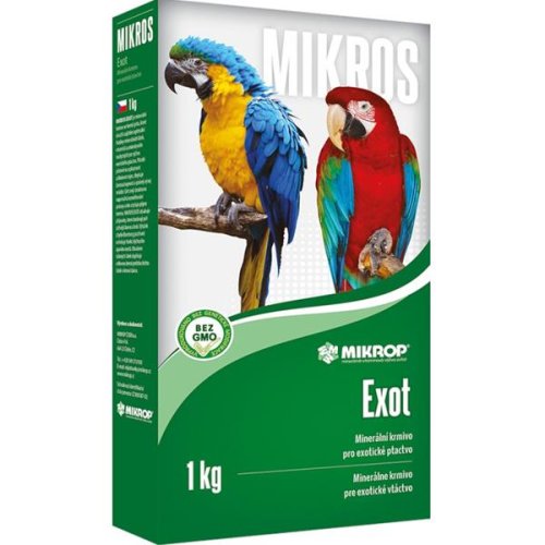 MIKROS EXOT je minerálne krmivo vo forme gritu, ktoré slúži na zabezpečenie optimálnej hladiny minerálnych látok, vitamínov a aminokyselín potrebných na výživu exotického vtáctva. Svojím obsahom minerálnych látok, vitamínov a aminokyselín vhodne dopĺňa celkovú dennú potrebu týchto živín.