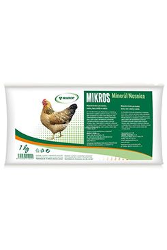 Minerálne krmivo pre nosnice, husi a morky v znáške, je určené na doplnenie kŕmnych dávok. zaisťuje optimálne hladiny makroprvkov a stopových prvkov nevyhnutných pre výživu danej kategórie zvierat pôsobí priaznivo na zlepšenie a udržanie zdravotného stavu zvierat a ich reprodukčné schopnosti napomáha k zvyšovaniu úžitkovosti zlepšuje príjem a využitie krmiva pridáva sa do kŕmnej dávky zloženej z jadra a statkových krmív dôkladným zamiešaním. Analytické zložky: vápnik 34%, fosfor 3%, sodík 1% Doplnkové látky: vápnik (Ca) 340g/kg, fosfor (P) 30g/kg, sodík (Na) 10g/kg, meď (Cu) 100mg/kg, železo (Fe) 125 600mg/kg, mangán (Mn) 700mg/kg, kobalt (Co) 1mg/kg, jód (I) 3,3 mg/kg, selén (Se) 1 mg/kg Kŕmny návod: Mikros Minerál sa používa denne, rovnomerne zamiešaný do kŕmnej dávky, zložené z jadra a statkov. vápnika. 1 polievková lyžica obsahuje cca 30 g. Dávkovanie: sliepky v znáške: 70 - 100 g na 10 kusov/denchovné kačice, husi v znáške: 90 g na 10 kusov/deň