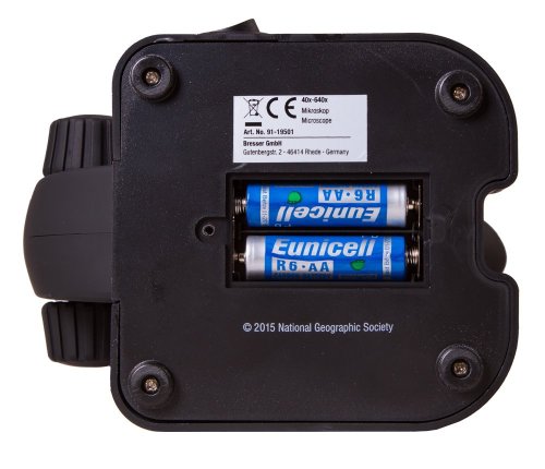 Mikroskop Bresser National Geographic so zväčšením 40-640x je určený predovšetkým pre malých začínajúcich bádateľov . Je určený pre pozorovanie v prechádzajúcom svetle, ktoré obstará spodné LED osvetlenie .