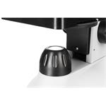 Vďaka napájaniu na batérie môžete prístroj používať aj bez sieťového napájania. Stolík mikroskopu je vybavený kotúčovou clonou so šiestimi otvormi na reguláciu svetelného toku.