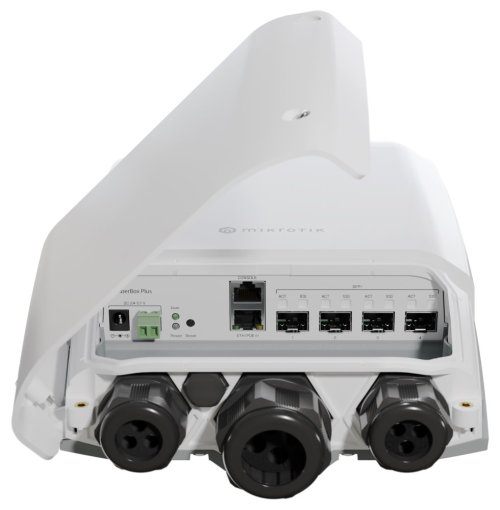 Výkonný vonkajší switch so štyrmi SFP+ slotmi a jedným GbE RJ-45 portom . Ide o nástupcu obľúbeného FiberBoxu , prípadne ho možno považovať za lacnejšiu verziu netFiber 9 . Switch je vybavený ARM procesorom Marvell 98DX226S, 256 MB pamäte RAM a špičkovým prepínacím čipom Marvell, ktorý zvládne aj tú najväčšiu záťaž. Ethernet port navyše podporuje napájací PoE-in vstup (802.3af/at) . Robustný a kompaktný vonkajší kryt (IP66) umožňuje montáž do všetkých typov prostredia. Na zadnej strane sa nachádza masívny chladič , ktorý zaisťuje vynikajúci odvod tepla. Súčasťou switchu je MikroTik RouterOS v7 a plnohodnotná licencia L5 .