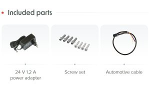 Napájací adaptér 24 V / 1,2 A, montážne skrutky, napájací kábel