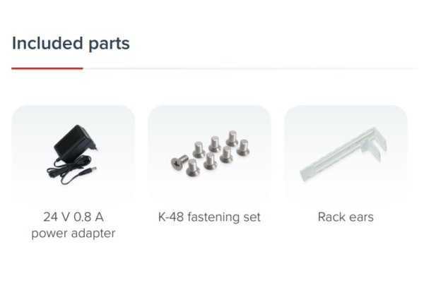 Súčasťou Cloud Smart Switch je operačný systém SwOS . V balení sú L profily na uchytenie do racku a napájací adaptér.