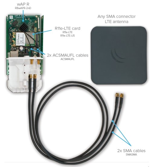 Mikrotik metrový redukčný kábel osadený konektormi SMA male pre pripojenie externej antény k LTE jednotkám.