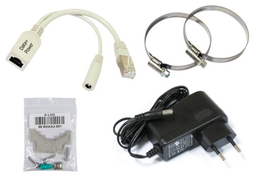 Jednotka sa k stožiaru pripevňuje kovovými sťahovacími pásikmi, ktoré sú súčasťou dodávky. Na nasmerovanie jednotky odporúčame zakúpiť aj polohovateľný držiak QMP-LHG . Súčasťou dodávky je napájací zdroj 24 V/ 0,8 A vrátane POE.