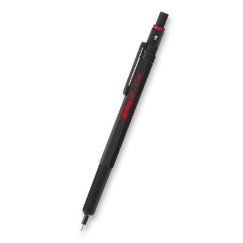 Mechanická ceruzka (mikrotužka):, * stláčací mechanizmus, * tuha HB o hrúbke 0,5 alebo 0,7 mm, * vstavaná a vymeniteľná gumovacia guma pod krytom viečka, * nastaviteľný indikátor tvrdosti tuhy pre jednoduchšiu orientáciu pri práci, Dodávané v darčekovej krabičke., Rotring. aký je rozdiel medzi mikroceruzkami Rotring 500, 600 a 800 >>