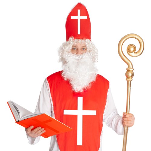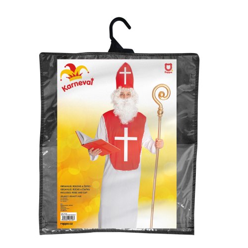 Karnevalový kostým mikuláša pre dospelých. Kostým obsahuje mikulášsku čiapku na suchý zips, dlhé biele rúcho a červenú náprsenku s bielym krížom. Neobsahuje palicu, knihu ani fúzy! Dĺžka bieleho rúcha od ramien dole je cca 145 cm.