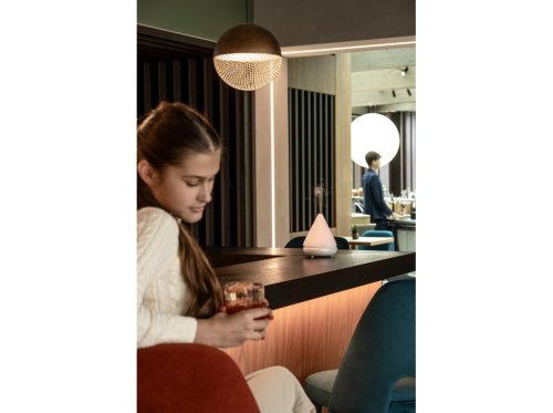 Elegantný ultrazvukový difuzér sa používa s vonnými olejčekmi radu Millefiori Natural. Stačí pár kvapiek do vody a vďaka rýchlemu odparovaniu sa vôňa izbou line za pár okamihov. Zároveň dochádza k zvlhčeniu vzduchu. Použitie je úplne bezpečné a ide o zaujímavý a funkčný doplnok. Ultrazvukový difuzér má úplne tichý chod a svieti - buď sa striedajú farby, alebo je možné zvoliť iba jednu. Do nádobky nalejte podľa návodu určené množstvo vody a nakvapkajte vonný olejček podľa požadovanej intenzity. Po odparení vody sa difuzér automaticky vypne. Výrobok nehreje.