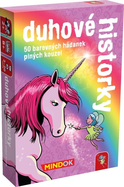 Dúhové historky sú tajuplné a zaujímavé detektívne príbehy. Zároveň je to originálna spoločenská hra pre 2 a viac hráčov. Nechajte sa obklopiť svetom farebných kúziel. Stretnete sa s odvážnymi škriatkami, prekrásnymi vílami a elegantnými jednorožcami. Čakajú vás aj zlé čarodejnice, zákerní draci a mnoho ďalších fascinujúcich bytostí. V každej hádanke na vás čaká magická záhada a jej riešenie môže ako kúzlom prežiariť váš svet. Hra obsahuje:
