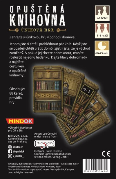 Zahrajte si únikovú hru v pohodlí domova. Len ste si chceli pozrieť pár kníh. Keď ste sa neskôr chceli vrátiť domov, zistili ste, že východ je zamknutý. A ak ho chcete odomknúť, musíte rozlúštiť nejednu hádanku. Dajte hlavy dohromady a nájdite cestu von z opustenej knižnice. Hra obsahuje: