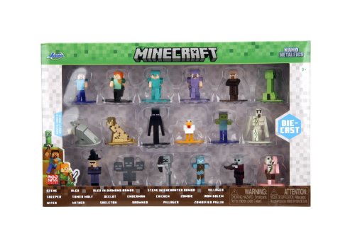 Kovové zberateľské nanofigurky Minecraft, multipack 18 ks. Výška figúrky 4 cm.