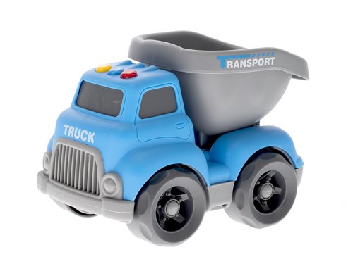 Auto sklápačka o veľkosti 16 cm pre najmenšie deti od 18 mesiacov. Auto je vybavené svetelnými aj zvukovými signálmi. Autíčko je ladené do šedo-modrej farby.