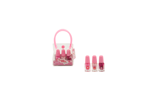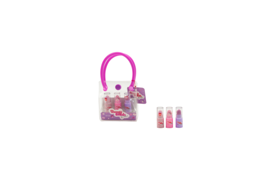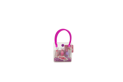Mini kabelka s malovátkami – 4 rôzne druhy podľa obsahu kabelky. Obsah kabelky 3× lak na nechty alebo 3× balzam na pery alebo 3× lesk na pery alebo 3× rúž.