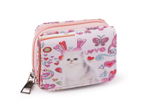 Mini peňaženka s potlačou má prednú stranu so zapínaním na magnet. Jej motívy [potešia predovšetkým dievčatá]. Vnútri nájdete 1 priehradku na bankovky. Mincovník je na druhej strane peňaženky, uzatvára sa na zips. Separáciou je rozdelený na 2 vrecká. Niektoré peňaženky (ktoré majú na povrchu malé srdiečka) sa blyští.