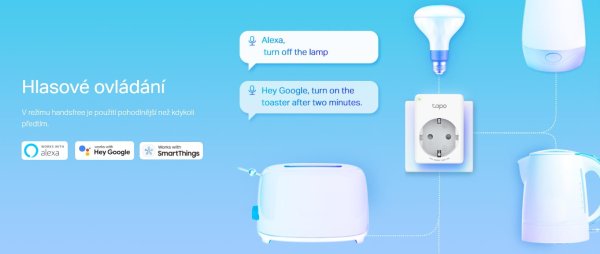 Hlasové ovládanie – Ovládanie chytrej zásuvky hlasovými príkazmi prostredníctvom Amazon Alexy, Apple Siri alebo Asistenta Google.