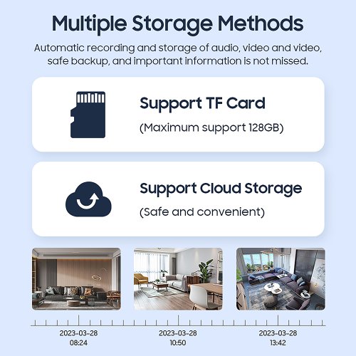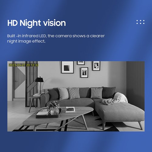 Kamera je vybavená PIR senzorom, ktorý spoľahlivo detekuje pohyb na vzdialenosť až 5 metrov. Pomocou mobilnej aplikácie Ubox a WIFI pripojenia máte kedykoľvek prehľad o dianí nielen vo vašom domove.