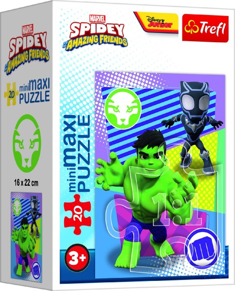 Detské puzzle, ktoré obsahujú 20 veľkých dielikov. Poskladaním puzzlí s motívom Spidey a jeho úžasných priateľov vznikne obrázok s rozmermi 220 x 160 mm. Rozmer krabičky: 11 x 8 x 4 cm Vhodné pre deti od 3 rokov