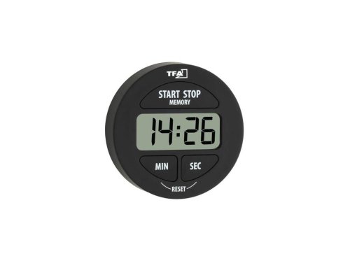 rozmery: pr. 55 x 17 mm hmotnosť: 27 g rozsah: doba až 99 minút, 59 sekúnd materiál: guma farba: čierna s magnetom pre upevnenie montáž na stenu alebo postavenie na stôl vrátane 1 x LR44 batérie