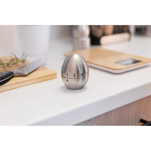 Kuchynská mechanická minútka AKCENT, v nerezovom prevedení, v tvare vajíčka. Minútka je veľmi praktický pomocník do kuchyne.