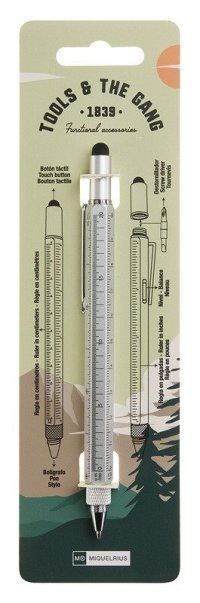 Multifunkčné guľôčkové pero spája elegantný písací nástroj s piatimi užitočnými funkciami, ktoré využijete doma, v kancelárii aj na cestách. Skvelé vychytávky, ktoré máte vždy po ruke. Okrem guličkového pera obsahuje pravítko v centimetroch aj palcoch, vodováhu, plochý a krížový skrutkovač a dotykový stylus pre smartfóny a tablety. Modrá náplň, atrament na olejovej báze, ktorý hladko kĺže po papieri. <br><br> • rozmery pera: 155 × O 13 mm<br> • stláčacia mechanika 5 v 1: guličkové pero, pravítko v centimetroch aj palcoch, vodováha, plochý a krížový skrutkovač, dotykový stylus pre tablety a smartfóny<br> • farba: strieborná