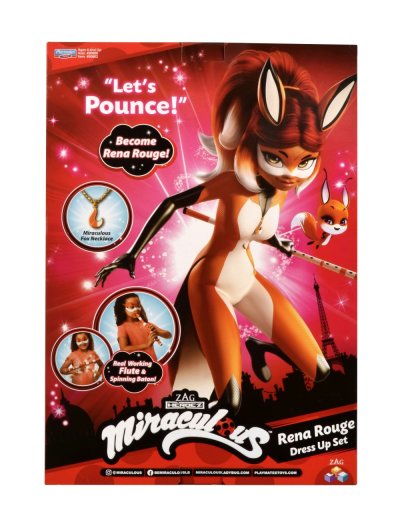 Prevlek Miraculous Rena Rouge vytvára kúzelný svet predstavivosti, v ktorom môžu byť deti statočné, zázračné a silné! Obsahuje masku Reny Rouge, zázračný náhrdelník s príveskom z líščieho copu. Ďalej obsahuje "My size" Trizz Kwami kúzelnú bytosť a funkčnú flautu!