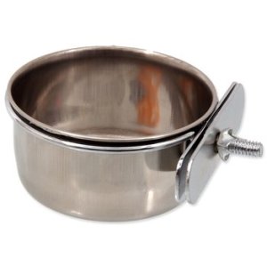 Nerezová miska na priskrutkovanie do klietok pre vtáky.