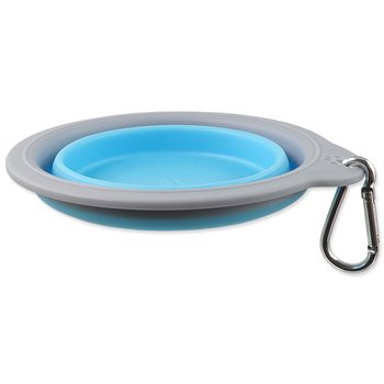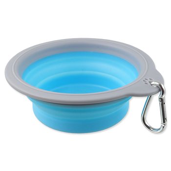 Cestovná miska skladacia. Vyrobená z odolného materiálu silikónu, ľahko zložiteľná do kompaktných rozmerov. Vhodná na cesty a dlhé prechádzky. Neprijíma pachy a ľahko sa udržuje. Odolná proti nárazom a mrazu. Obsahuje karabínu na uchytenie na batoh alebo oblečenie.