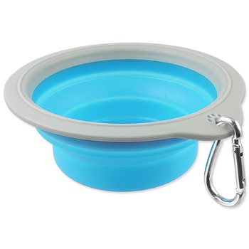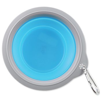 Cestovná miska skladacia. Vyrobená z odolného materiálu silikónu, ľahko zložiteľná do kompaktných rozmerov. Vhodná na cesty a dlhé prechádzky. Neprijíma pachy a ľahko sa udržuje. Odolná proti nárazom a mrazu. Obsahuje karabínu na uchytenie na batoh alebo oblečenie.
